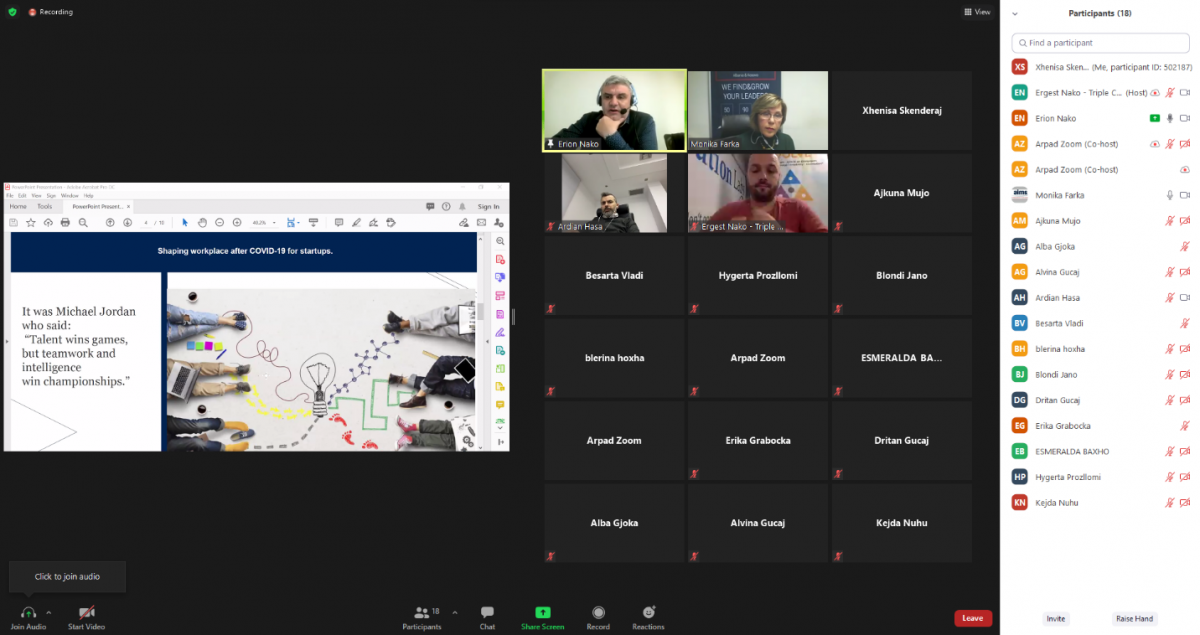 Triple City, regarding the actual situation, organized a free webinar with four important figures, in the world of entrepreneurship in Albania. The topic of this activity was focused mainly on three aspects: 1. Remote work and accountability; 2. Building culture from a distance; 3. How we’ll return to work.